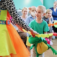 Ребята с нетерпением ждали гостей, и отделение сразу наполнилось музыкой, воздушными шарами и детским смехом! Малыши сразу включились в веселые игры, а ребята постарше сначала сохраняли серьезность, но и они не устояли перед обаянием аниматора Ирины.